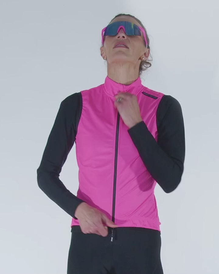 Engineered for optimal visibility and protection for cooler rides, the Elite Cycle Vest has you covered. The front panel features wind and waterproof laminated fabric to keep your core warm, while enhanced shoulder coverage shields you from the elements. At the back, a blown-out mesh design ensures efficient heat dissipation. This PRO-fit vest also includes a 2-way zipper, allowing quick access to back jersey pockets without fully unzipping. Elevate your ride with unmatched performance and versatility.