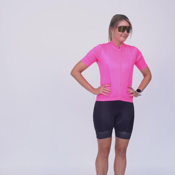 Clean lines. Solid performance. Comfort that goes the distance. The all-new Core Cycle Jersey is designed for riders who demand performance without the squeeze. Crafted with breathable, moisture-wicking Italian Aeromax fabric this jersey keeps you cool, dry, and comfortable, whether you're pushing through intervals or enjoying long training rides.