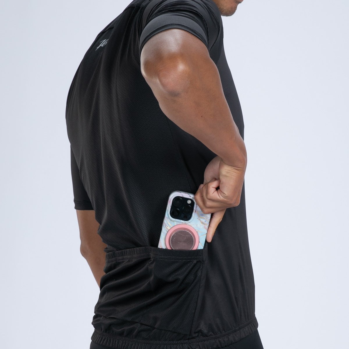 Clean lines. Solid performance. Comfort that goes the distance. The all-new Core Cycle Jersey is designed for riders who demand performance without the squeeze. Crafted with breathable, moisture-wicking Italian Aeromax fabric this jersey keeps you cool, dry, and comfortable, whether you're pushing through intervals or enjoying long training rides.