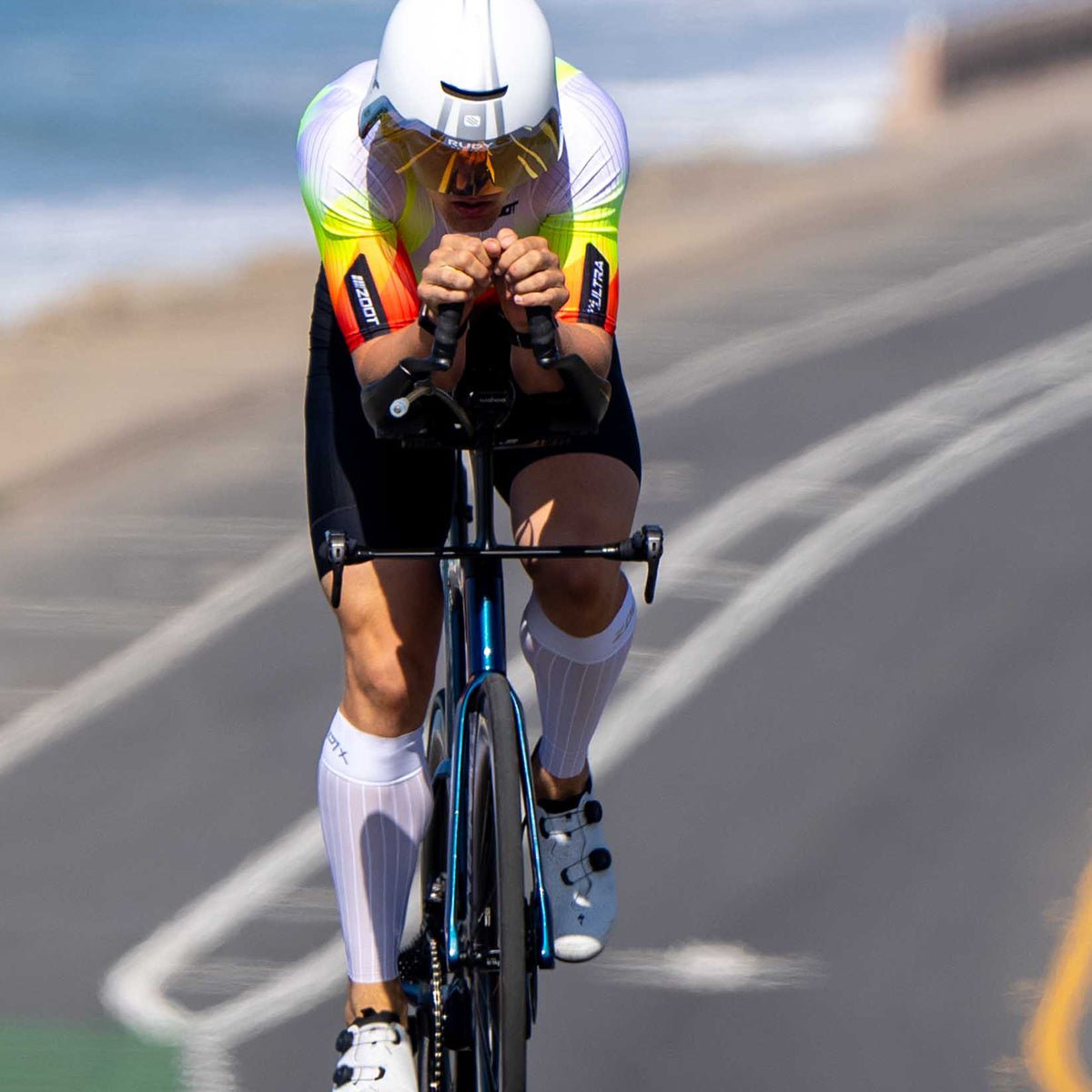 - AERO FABRIC AND DRAG-REDUCING FIT FOR THE BIKE