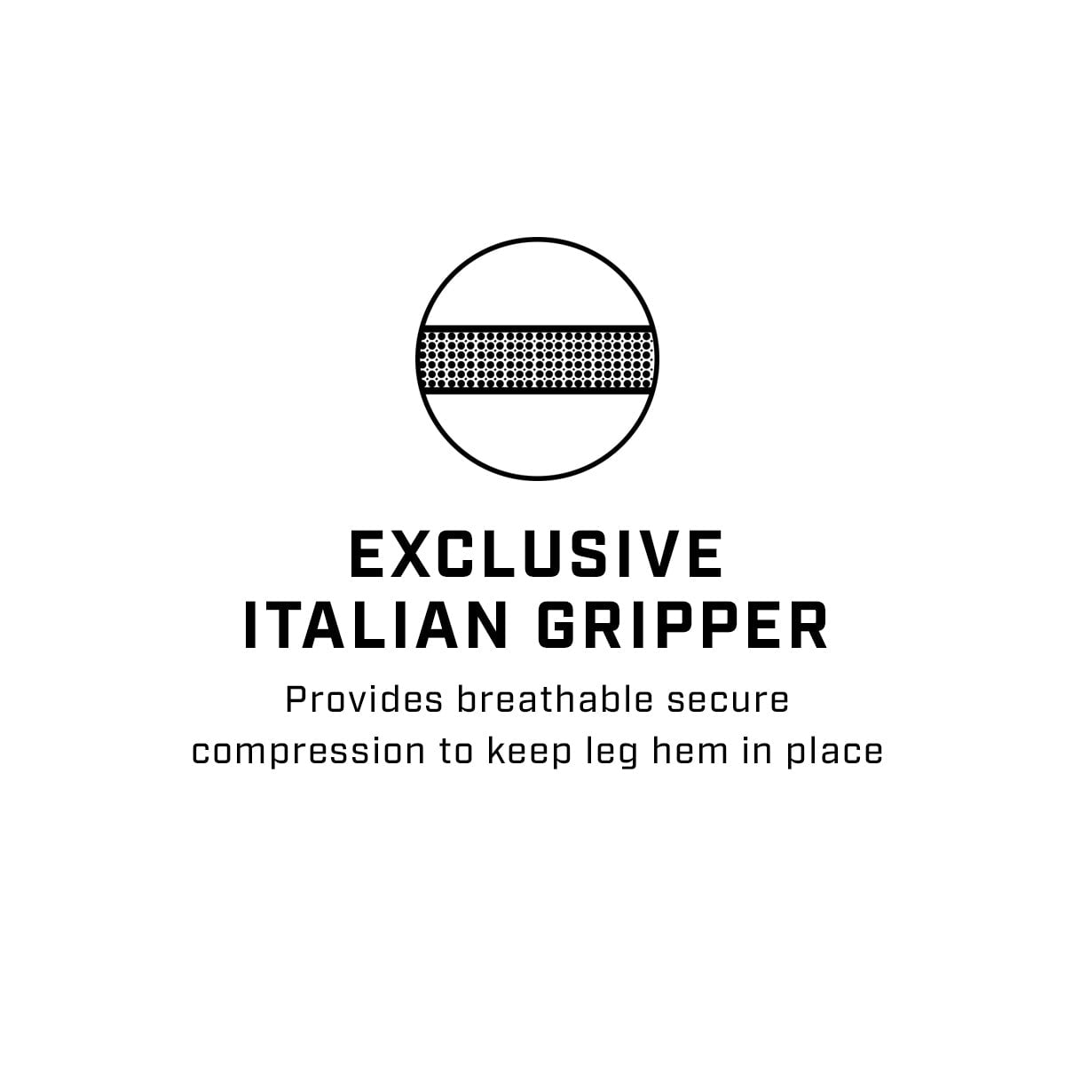 - Exclusive Italian gripper provides breathable secure compression to keep leg hem in place