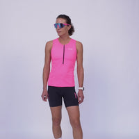 The Women’s Core Tri Tank delivers essential sun protection and comfort without compromising on style. Designed with full front and back coverage and a dropped rear hem, it's perfect for athletes who want a bit more protection and a relaxed fit triathlon tanktop. Crafted from premium performance fabric, it keeps you cool, dry, and comfortable as the miles stack up.
