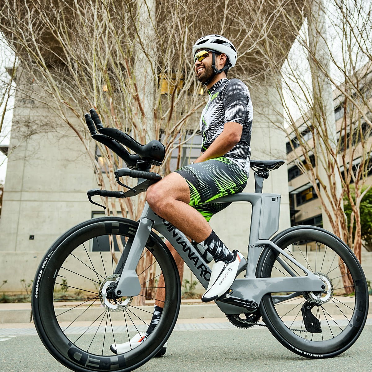 Whether you're rolling out for a KOM or a recovery ride, our LTD Cycle Bib Shorts have earned their rep as the perfect choice for every ride. With your TT bike or road bike, you'll appreciate chamois support for up to 8+ hours of saddle time. The bibs are constructed from a premium Italian fabric to allow exceptional freedom of movement, while the bib straps are designed with a soft mesh material for maximum comfort. Flatlock stitching ensures all seams lie completely flat to reduce chafing, and a 70mm wide leg gripper provides a secure fit.