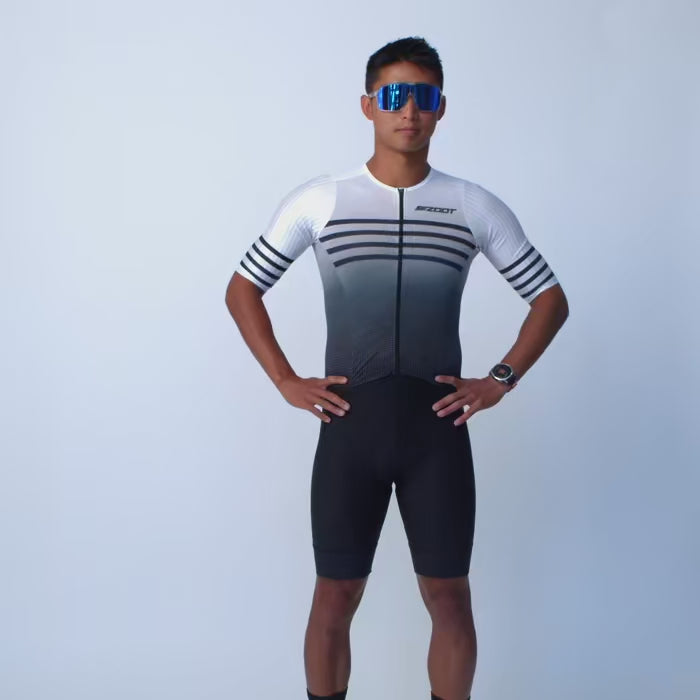 Developed with longer sleeves and wind tunnel tested fabrics to reduce the vortex of air which is generated behind the athlete, ultimately reducing drag and saving watts.